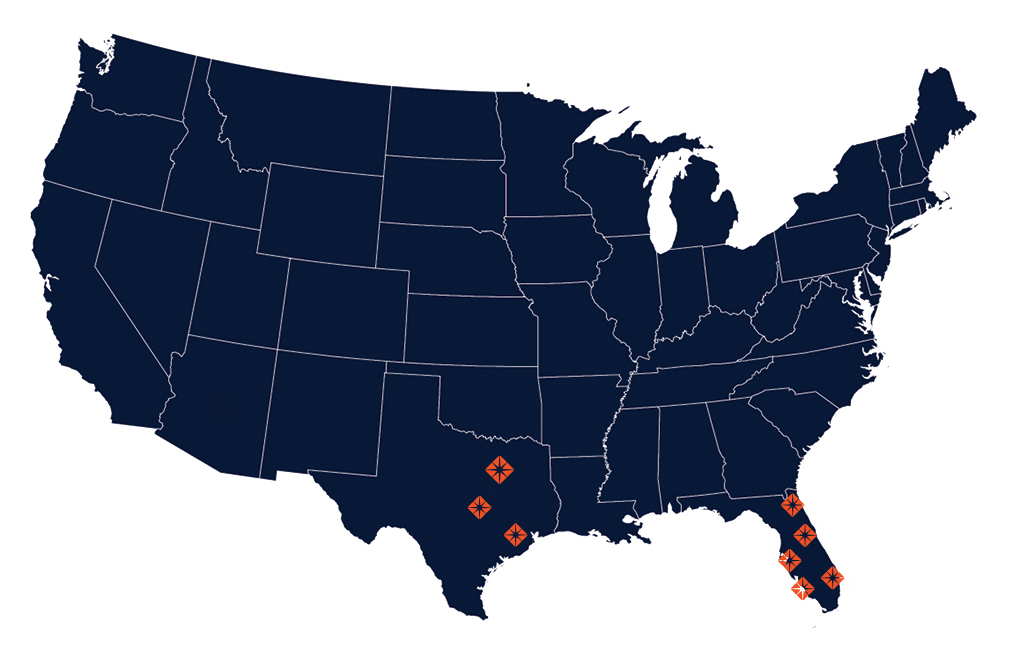 FLORIDA | Fort Myers, Jacksonville, Miami, Orlando, Tampa TEXAS | Austin, Dallas, Houston